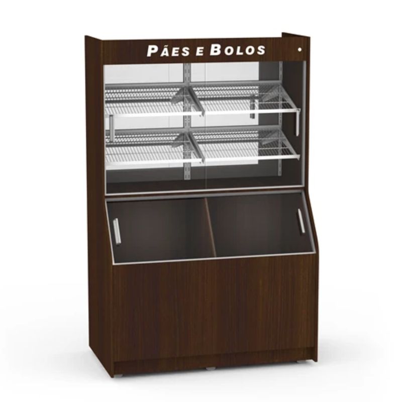 Este expositor para pĂŁes combina durabilidade, funcionalidade e um design moderno para valorizar seus produtos e facilitar o atendimento. Com gabinetes estruturados em MDF laminado de 15mm, oferece resistĂȘncia e um acabamento sofisticado. Suas prateleiras inclinadas tipo aramado garantem melhor exposição dos pĂŁes, enquanto os suportes tipo mĂŁo francesa em aço galvanizado permitem regulagem de altura para maior praticidade. Conta ainda com pĂ©s ajustĂĄveis, espelho traseiro de 3mm para ampliar a visibilidade dos produtos e portas de correr em vidro temperado, proporcionando um manuseio seguro e eficiente no dia a dia.
