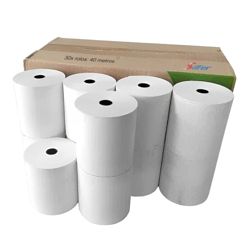 Caixa com 30 rolos de 80 mm de largura e 40 metros de comprimento
