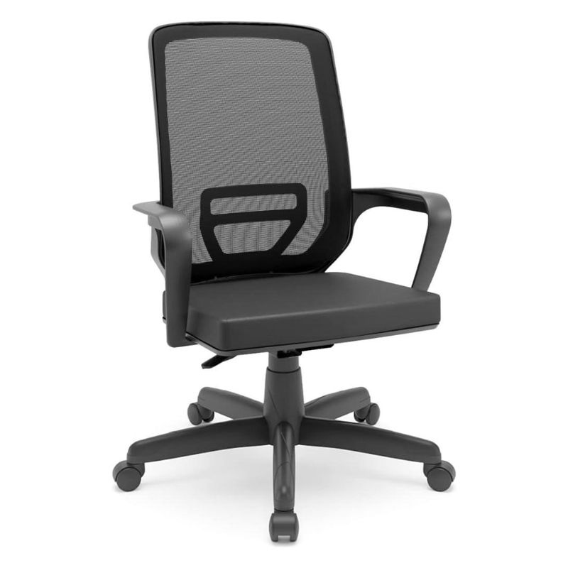 Este produto oferece praticidade e conforto para ambientes corporativos e residenciais. Com revestimento em vinil e estrutura resistente, é ideal para uso diário, combinando durabilidade com mobilidade graças aos rodízios integrados. Seu design funcional conta com base Diretor Standard e tela reforçada, oferecendo um bom suporte sem apoio de cabeça.