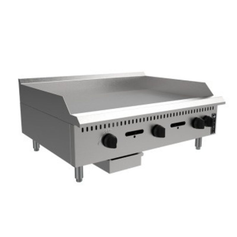 Com painel e laterais em aço inoxidável, nosso produto redefine a excelência em equipamentos de cozinha. A borda anti-respingo em aço inoxidável de 2,0 mm e a chapa fabricada em aço carbono, com espessuras de 5/16' (8 mm), apresentam uma superfície polida de alta qualidade, soldada de forma impecável às bordas para assegurar estanqueidade excepcional. O queimador esmaltado à fogo, com registro independente, não só assegura uniformidade à superfície de trabalho, mas também oferece durabilidade incomparável. Com manipuladores em alumínio injetado, pintados em preto para maior rigidez e durabilidade, e um registro frontal independente que controla a passagem de gás para o piloto, este produto se destaca pela sua precisão e praticidade. A bandeja coletora em aço inoxidável, de fácil remoção e limpeza, e os pés ajustáveis de 4' (102 mm) em aço carbono cromado completam um conjunto que combina funcionalidade e robustez. Foi projetado para operar com gás natural encanado, fornecido diretamente pela concessionária por meio de tubulações fixas.