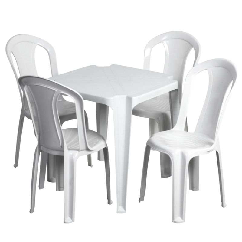 Conjunto mesa com 4 cadeiras bistrô modelo ponte nova sem apoio de braço branca, certificada pelo Inmetro, durável, pode ser usada em ambiente interno ou externo, sendo resistente a raios solares e à chuva, por ser fácil de manuseá-la, é uma ótima opção para quem deseja ter um produto versátil e de ótima qualidade. Ideal para estabelecimentos comerciais tipo restaurantes, feiras livres, pousadas, escolas, padarias, pizzarias... Ou não, festas, reuniões, igreja, comemorações e eventos em geral