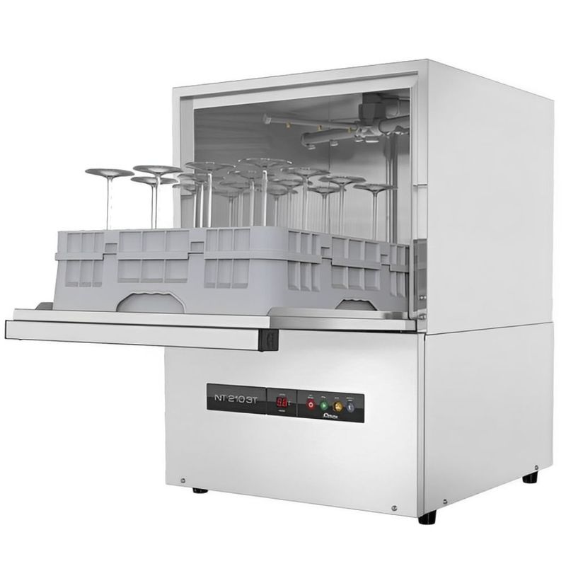 A LAVADORA NT210 é uma máquina de alto desempenho e confiabilidade, ideal para ambientes industriais e comerciais. Seus acessórios padrão incluem 1 gaveta com capacidade para 18 pratos ou 9 bandejas, 1 gaveta para louças especiais e 1 suporte para até 120 talheres. Com um desempenho notável, ela pode realizar 60, 40 ou 28 gavetas por hora, com ciclos de lavagem + enxágue de 60, 90 ou 130 segundos. Sua capacidade mecânica é de 1.080 / 720 / 504 pratos por hora, enquanto o consumo de água é de apenas 134 ml por prato, com baixo consumo de detergente e secante. A lavadora possui facilidades como controles automáticos de nível de água e temperaturas, início de ciclo automático ao fechar a porta ou pelo painel, e um painel de comando com teclas de liga/desliga, operação e seleção de tempo de ciclo. Além disso, ela pode operar sobre ou sob balcões e Estrutura de Apoio, com uma porta rígida e resistente para apoio das gavetas durante a carga e descarga. Sua facilidade de limpeza é assegurada com acesso interno fácil, filtro da motobomba de lavagem, dreno e tampões removíveis manualmente. A lavadora também possui um filtro de água externo com elemento removível e instalação simplificada 220v bifásico ou trifásico ou 380v trifásico em um único modelo, acompanhado de um completo manual de operação e limpeza, termômetros digitais e beep fim de ciclo.