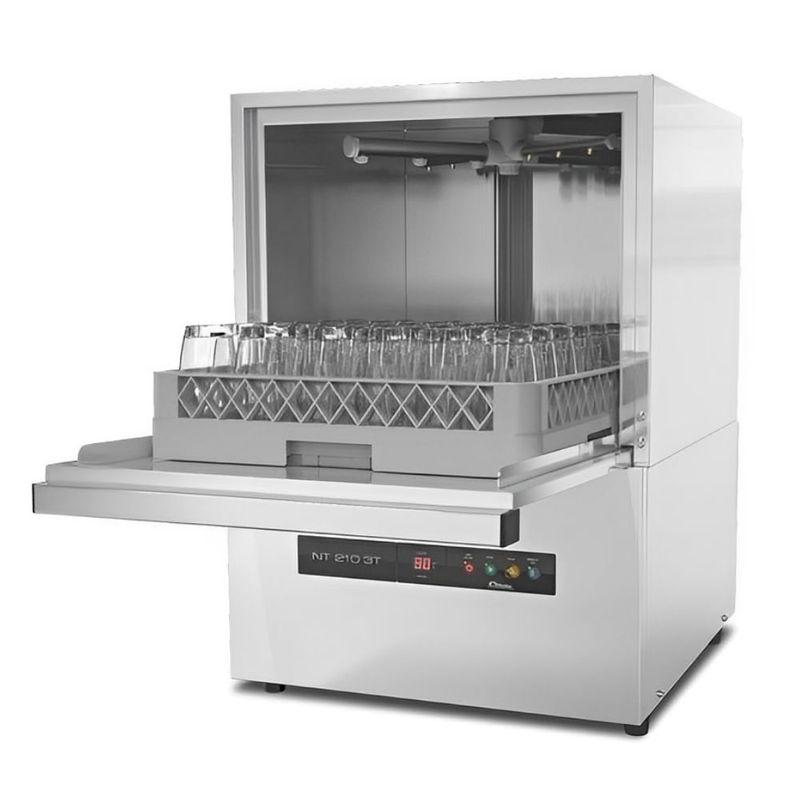 Quanto à confiabilidade, a NT 210 3T é homologada pela portaria 371 do INMETRO e possui uma construção robusta em aço INOX 304 e outros materiais resistentes à corrosão. Milhares de unidades já foram vendidas e instaladas, com suporte técnico permanente. Principais Características Técnicas: incluem reconhecida robustez e eficácia, braços giratórios inferiores e superiores com bicos de alta pressurização para excelente higienização, motobomba de enxágue e aquecedor incorporados e três tempos de ciclo selecionáveis pelo operador. Além disso, possui sistema de segurança que interrompe o ciclo em caso de abertura de porta e motobombas de lavagem e enxágue de alto desempenho. O padrão de fornecimento inclui a lavadora Netter NT 210 3T, 1 gaveta (rack) de pinos, 1 gaveta (rack) lisa, 1 suporte para até 120 talheres, mangueira de conexão de água (2 metros) , mangueira de esgoto (2 metros) , cabo de conexão elétrica (2 metros, sem plugue) , filtro de resíduos sólidos para a rede de fornecimento de água e 2 anéis de vedação para o dreno (reserva) .