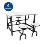 Ideal para compor ambientes com funcionalidade e estilo, esta mesa com bancos oferece um design moderno e resistente. O tampo da mesa em MDP-BP de 25mm com borda de 2mm garante durabilidade, enquanto os tampos dos bancos, também em MDP-BP de 25mm, proporcionam conforto e robustez. A estrutura metálica em aço carbono com pintura epóxi pó oferece uma base resistente e acabamento de alta qualidade.