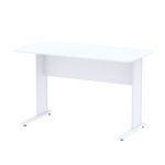 Nossa mesa auxiliar (secretária) é uma adição prática e elegante para qualquer ambiente de trabalho. Confeccionada em madeira MDP BP com 15mm de espessura, oferece durabilidade e resistência excepcionais para o uso diário. Revestida com laminado melamínico na cor branca, proporciona uma aparência limpa e contemporânea, enquanto o acabamento das bordas com perfil PVC flexível garante um visual refinado e proteção contra danos. Os pés, feitos em aço com tratamento antiferrugem e pintura eletrostática, garantem estabilidade e durabilidade prolongada. Com um design de pé tipo H, equipado com base em tubo oblongo e sapatas niveladoras para corrigir desníveis do piso, esta mesa oferece funcionalidade e estabilidade superiores. Todas as partes em aço são submetidas a um tratamento anticorrosivo, garantindo uma longa vida útil, mesmo em ambientes mais adversos.