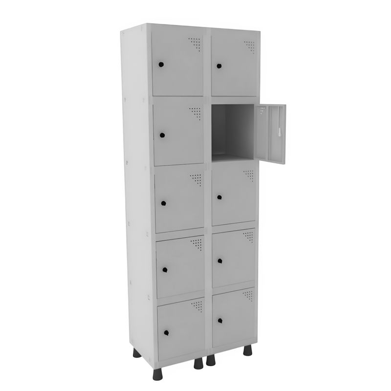 "O Armário de Aço é um produto altamente versátil e funcional, ideal para atender às necessidades variadas de ambientes empresariais. Sua estrutura sólida e resistente torna-o especialmente indicado para aplicações como guarda-volumes, academias, refeitórios, empresas, banheiros e vestiários. O projeto inteligente do armário promove a ventilação interna através de venezianas nas portas, criando um ambiente arejado e livre de odores indesejáveis.